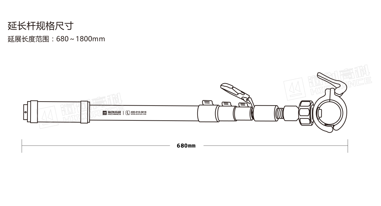 延展長度范圍:680 ~ 1800mm
